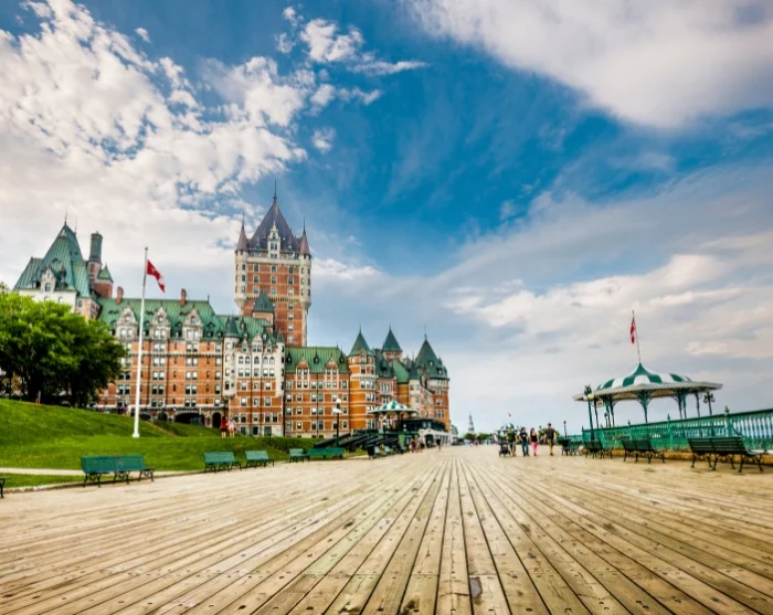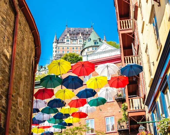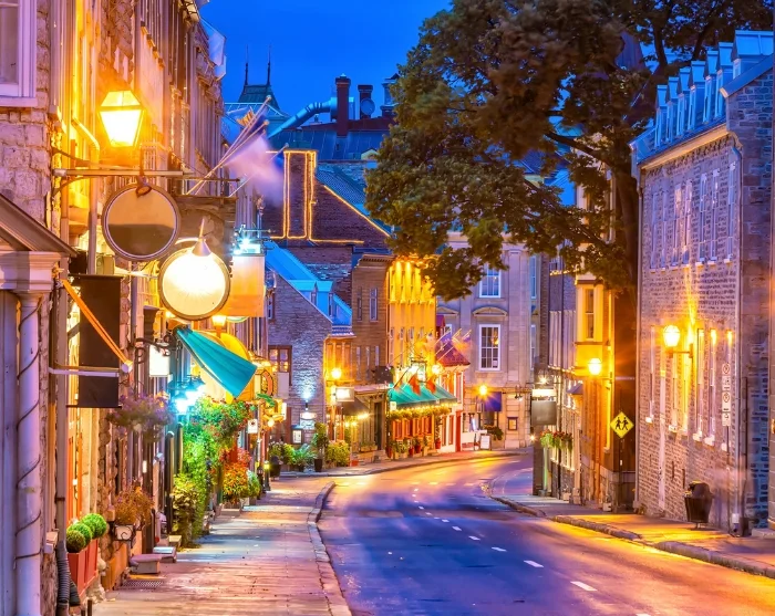 Fra kolonitidens slagmarker til charmerende byliv, gennemsyret af fransk-canadisk kultur, når du til det livlige Petit-Champlain-kvarter, der bugner af små specialbutikker, caféer og gallerier. Her afsluttes din byvandring, og du kan passende nyde en frokost her, inden du fortsætter din dag i Québecs charmerende gader.