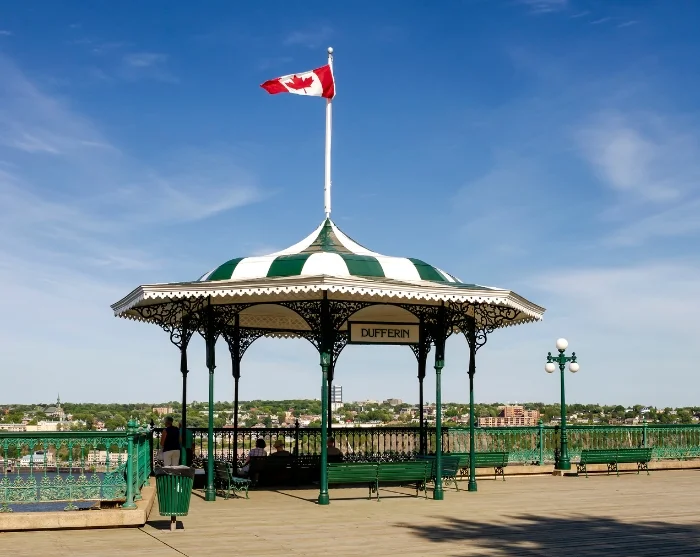 Fra Place Royale, hvor byen blev grundlagt i 1608, går ruten forbi Canadas ældste kirke, Notre-Dame-de-Québec Basilica-Cathedral, til det imponerende hotel, Château Frontenac, der troner frem fra flere gadehjørner. Fra Dufferin Terrace kan du nyde en smuk udsigt over St. Lawrence-floden, der vidner om byens militære fortid. I 1759 sejlede briterne til byen, hvor de indledte og sejrede i det afgørende slag på Abrahamsletten. Det franske Canada blev officielt overdraget til Storbritannien i 1763.