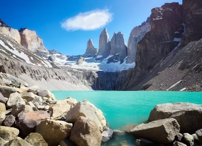 På ruten krydser du iskolde bjergstrømme og går langs moræner, der er aflejret af gletsjere gennem tiden. Den sidste del opad er meget ujævn, og på visse dele af ruten er der meget stejle fald, som kan være hårdt for knæene. Men belønningen er stor, når du når frem til ”Base de Las Torres”, der ligger for foden af de lodrette granit-tårne Torres del Paine, som har givet nationalparken sit navn. Her spiser du den medbragte frokost og får mulighed for at tage billeder af det fantastiske landskab, inden turen går den samme vej tilbage igen. Efter en lang dags vandring bliver du kørt tilbage til dit hotel.