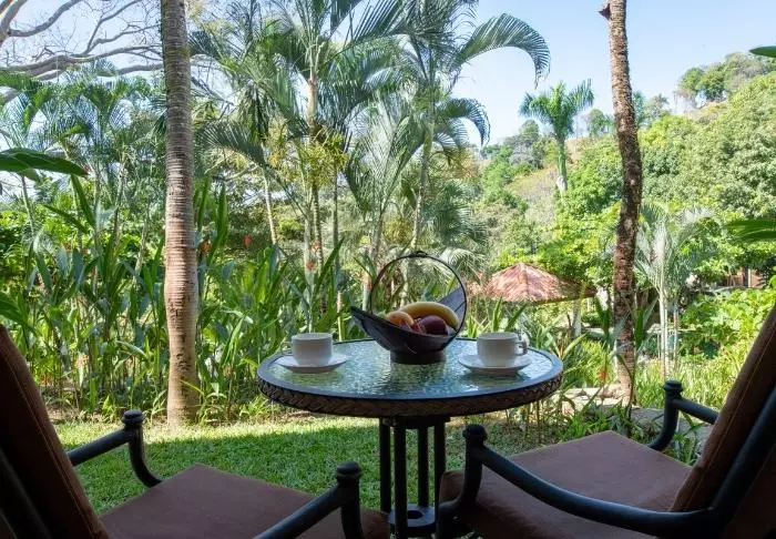 ”Garden”-værelserne har udsigt til den frodige have og ligger i stueplan med udgang til egen terrasse med bord og stole. ”Premium”-værelserne har hav- og jungleudsigt og egen balkon med bord og stole, hvorfra en betagende solnedgang kan nydes.