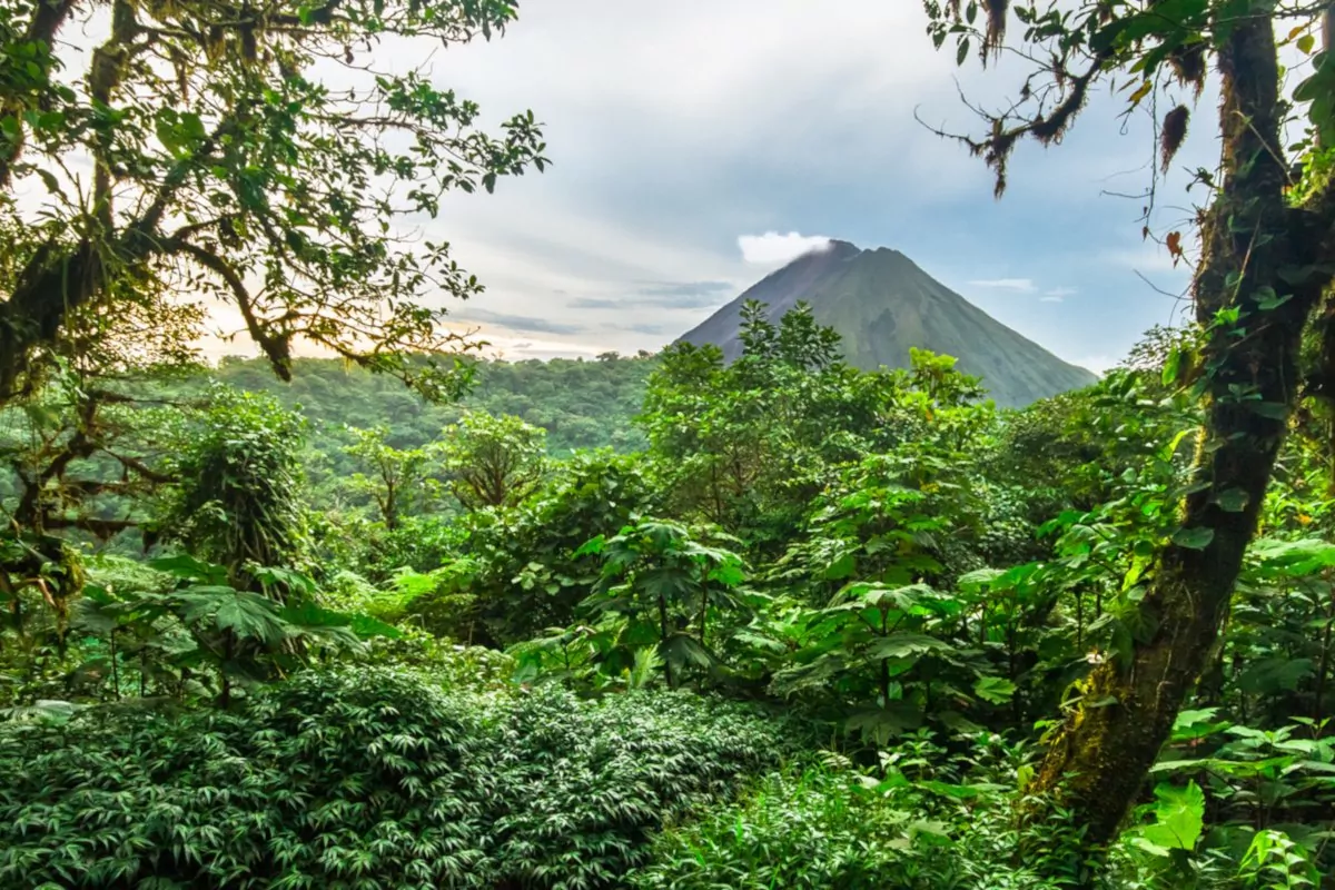Fra regnskoven går turen mod Costa Ricas mest berømte vulkan, Arenal-vulkanen, der smukt troner i baggrunden af byen La Fortuna.