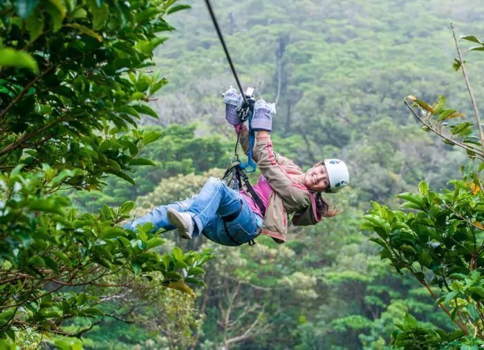 Tågeskovens eventyrlige landskab kan opleves på flere måder, bl.a. fra oven på en 2,5 km vandretur ad hængebroer i trætoppene. Du kan også prøve at zipline, som er en mavekildrende aktivitet, hvor du fastspændt i kabler suser blandt trætoppene.