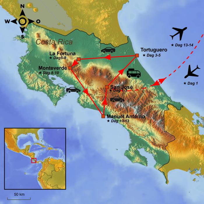 Rejsen starter i San José, Costa Ricas hovedstad, og går herfra til Tortuguero Nationalpark, hvor du oplever en unik natur og et fascinerende dyreliv.