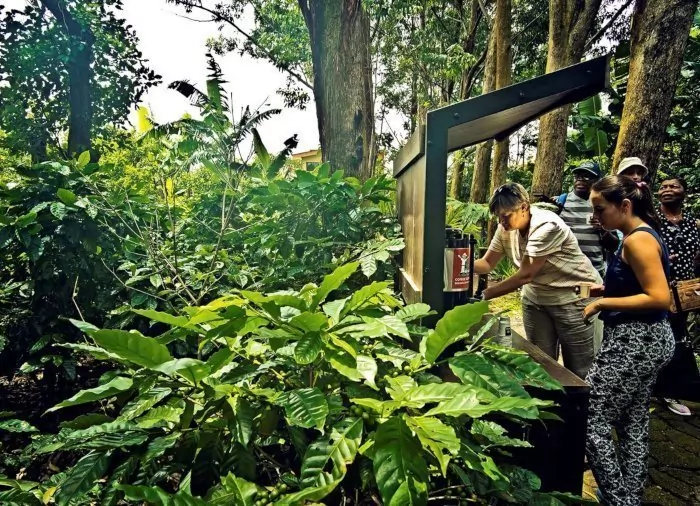 Undervejs gøres et kort stop i Guapiles, hvor morgenmaden nydes i grønne og fredfyldte omgivelser. Hvis tiden tillader det, kan du gå en lille tur ned ad stien gennem den frodige vegetation til det brusende vandløb, der strømmer forbi, inden turen går videre.