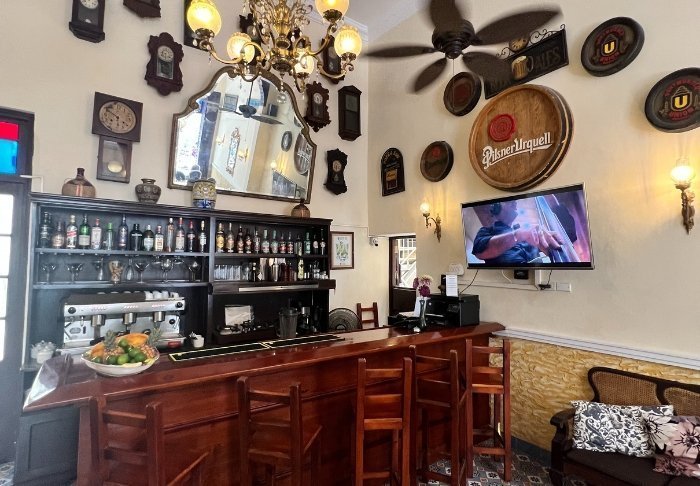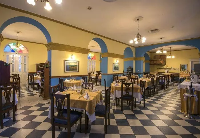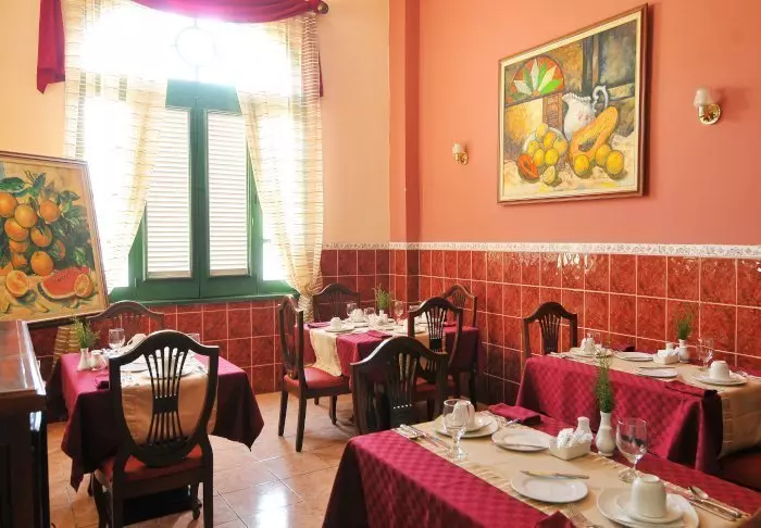 Der er hyggelige fællesområder, hvor du kan sidde og slappe af. Derudover er der en lille restaurant, der både serverer internationale og traditionelle cubanske retter. Det er også her den inkluderede morgenmad nydes.