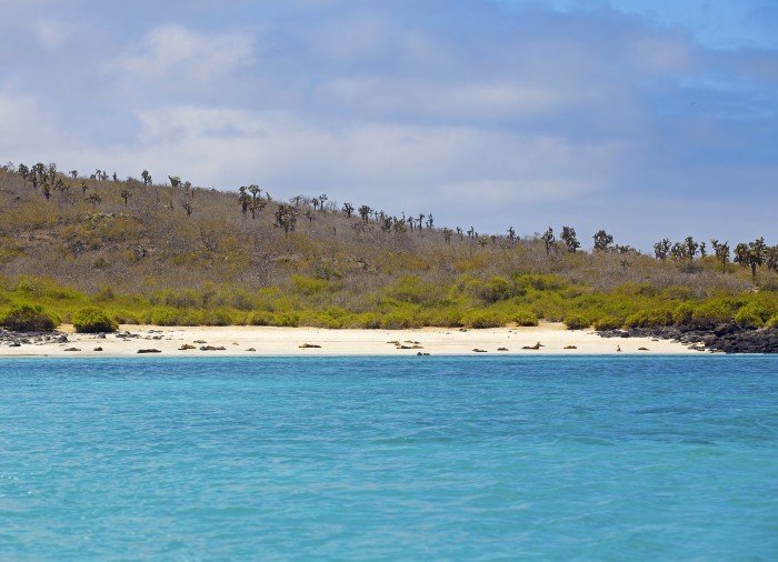 Santa Fé ligger sydøst for Santa Cruz, og fra Puerto Ayora er der ca. 1,5 times sejlads ud til øen. Her bliver du budt velkommen af en stor søløve-koloni, som holder til på den hvide sandstrand.