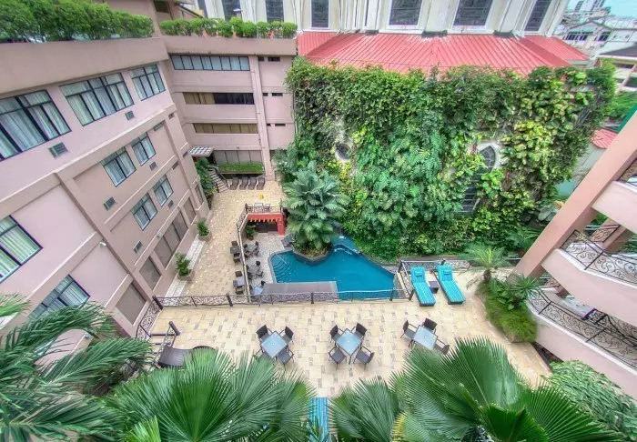 Det farverige hotel er i to etager og har 29 værelser, som ligger rundt om den frodige gårdhave. Her er mange hyggelige fællesområder, hvor du kan slappe af i en hængekøje og få en snak med andre rejsende.