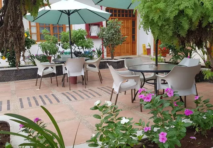 I den lille restaurant, El Manglar, serveres din inkluderede morgenmad som buffet. Restauranten har åbent hele dagen, så du kan også spise både frokost of aftensmad her. Du kan både sidde inde i restauranten eller ved bordene i gårdhaven.