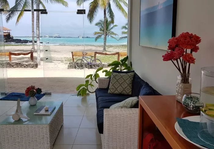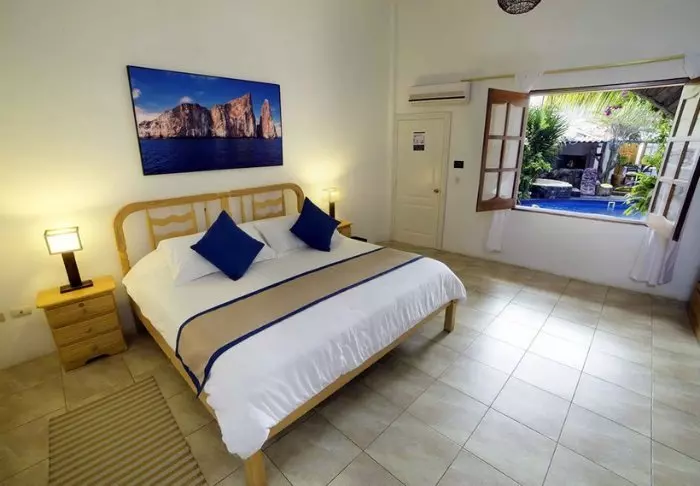 Her er blot 16 værelser (4 standard værelser og 12 standard værelser med havudsigt). Værelserne er simpelt indrettede, men pæne og rene med farverige billeder på væggene af naturen og dyrelivet på Galapagos-øerne. Alle værelser har eget badeværelse, aircondition, wi-fi og kabel-tv.
