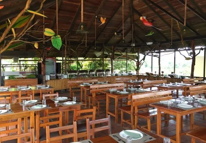 Over restauranten er der et fællesområde med spil og tv, og herfra kan du klatre videre op i et lille udkigstårn og få en flot panoramaudsigt over regnskoven og lodgen. På en klar dag kan du se Andesbjergene og den smukke kegleformede Tungurahua-vulkan i horisonten.