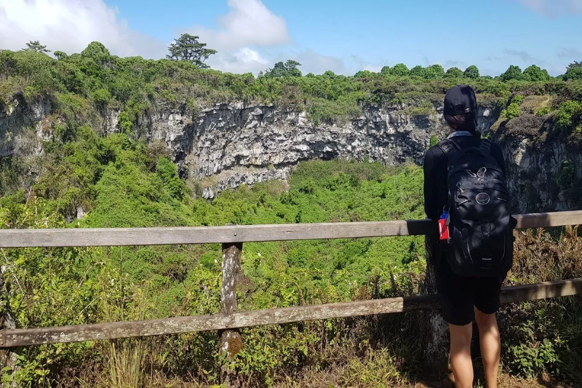 Første stop er ved Los Gemelos, som også kaldes tvillingekraterne. Det er dog lidt et misvisende navn, da der ikke er tale om kratere, men derimod to enorme zinkhuller. Her kan du opleve et rigt fugleliv i den frodige skov af solsikketræer (Scalesia).