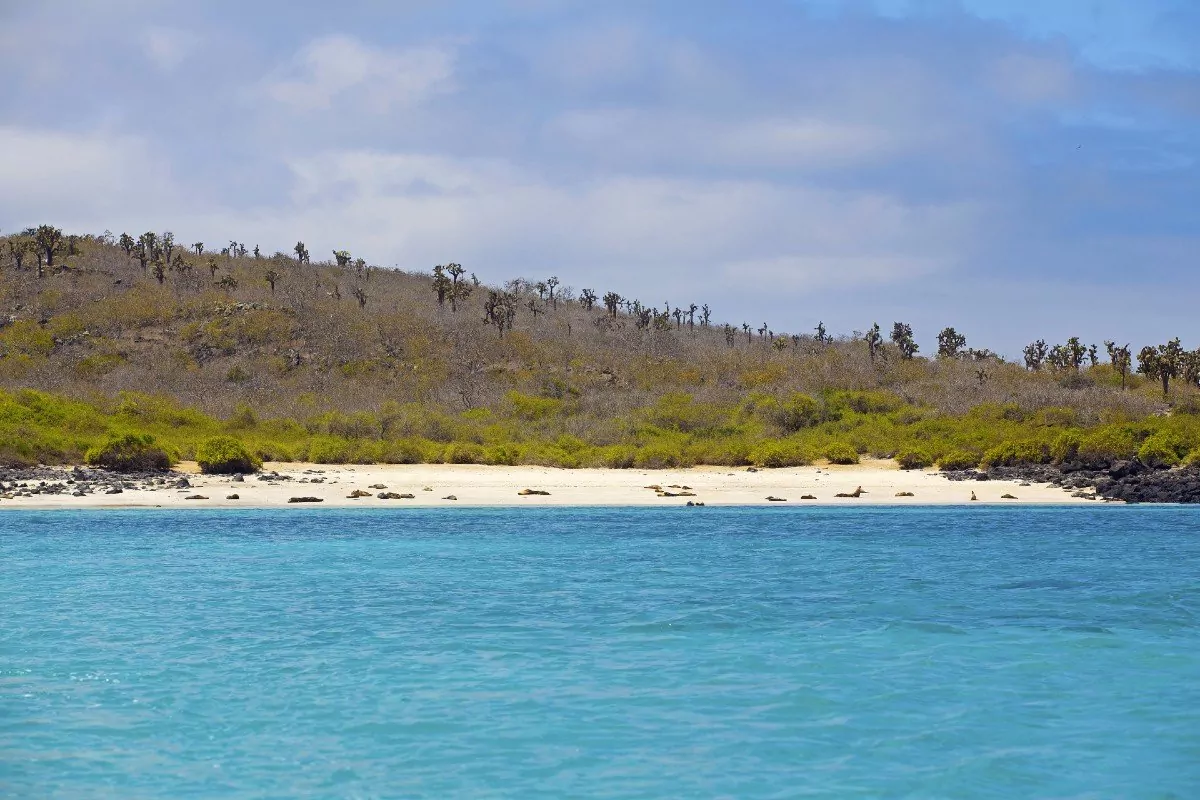 Santa Fé ligger sydøst for Santa Cruz, og fra Puerto Ayora er der ca. 1,5 times sejlads ud til øen. Her bliver du budt velkommen af en stor søløve-koloni, der holder til på den hvide sandstrand.