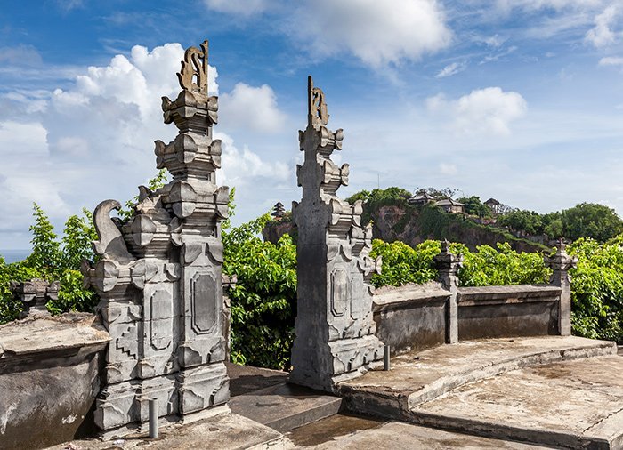 Du bliver hentet på dit hotel om eftermiddagen og bliver kørt til et af Balis mest berømte templer Pura Luhur Uluwatu, der ligger på en klippeafsats 76 m over havets overflade med en fantastisk udsigt over det Indiske Ocean. Mærk suget i maven når du står på toppen langs muren og kigger ned i det brusende hav, der med store skumsprøjt slår ind mod klippen. Arkæologiske fund daterer templet tilbage til det 10. århundrede og det er samtidig et af de smukkeste steder på Bali at nyde solnedgangen. I træerne ved indgangen til templet holder legesyge aber til. De siges at beskytte templet mod det dårlige og det onde.