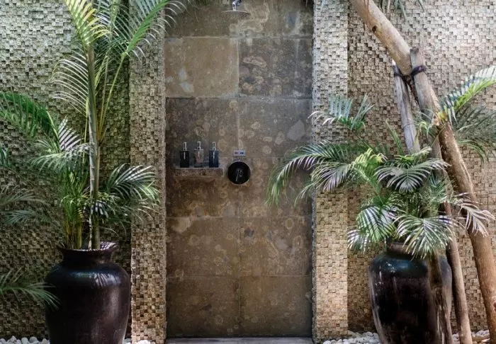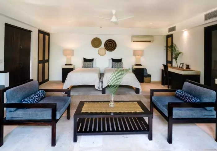 Batu Karang er opført i rustikke materialer, som fint harmonerer med de tropiske omgivelser. Stilen er moderne og traditionel, hvilket også går igen i resortets 37 indbydende villaer og suiter, der er indrettet med lyse vægge, flotte stengulve og fine mørke træmøbler, der bidrager til en varm og hyggelig atmosfære.