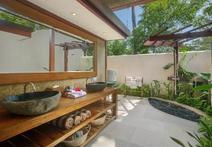 Pondok Santi Estate har privat strand med liggestole og hængekøjer, hvorfra du kan nyde solen og udsigten over det turkisblå vand. Et par meter fra strandkanten venter gode snorkelmuligheder med en verden af farverige koraller og fisk.