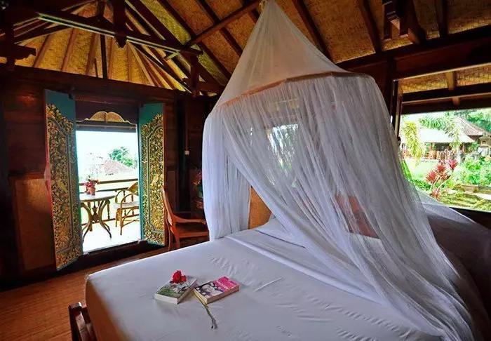 Du bor i charmerende bungalower kaldet ”lumbung”, som oprindeligt var gamle rislader. Alle bungalower er indrettet i traditionel stil og med fine detaljerede træudskæringer. De har alle soveværelse med myggenet over sengen, badeværelse med enten bruser eller badekar og en dejlig balkon med en betagende udsigt over bjerge og rismarker. Der er gratis wi-fi, men til gengæld ingen aircondition – det er nemlig ikke nødvendigt i det tempererede højland.