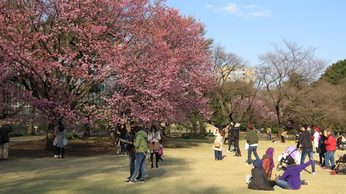 På en tur i en af de store parker i Tokyo som Uoeno kan du særligt under kirsebærblomstringen ”Sakura” i slut marts/april opleve folkefesten der udspiller sig. Japanerne bliver helt euforiske under Sakura. De tager madkurven og familien med og slår sig ned i parkerne og fester, mens blomsterbladene fra de lyserøde kirsebærblomster daler ned om ørene.