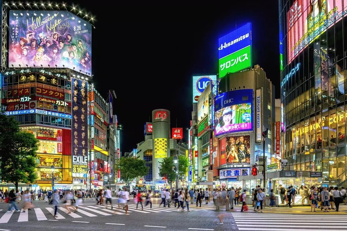 I Shibuya kvarteret oplever du verdens største og mest imponerende gadekryds med lysregulering, hvor flere tusinde mennesker krydser hinanden, når der er grønt for gående og rødt for kørende fra alle retninger. Gå ikke glip af at opleve det ovenfra i en af de mange bygninger ved krydset.
