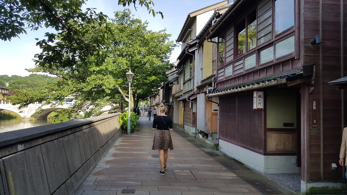 Du kan besøge Kanazawas tre aktive geisha distrikter, Higashi Chayagai, Nishi Chayagai og Kazuemachi. Som allerede omtalt blev Kanazawa ikke bombet under 2. verdenskrig, så derfor er der bevaret mange skønne oprindelige bygninger. I vinterhalvåret bliver der sat beskyttede halmmåtter op langs væggene for at beskytte dem.