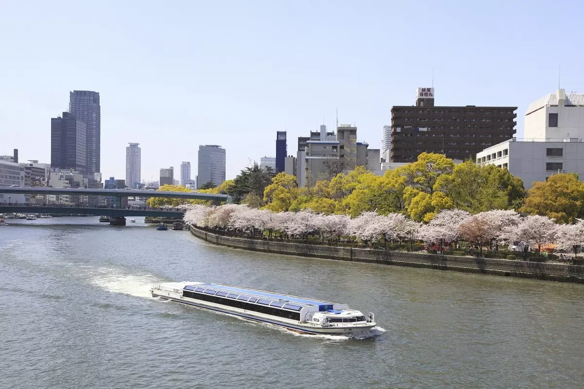 Fra Osaka borgen er der en kort gåtur til floden, hvor du går ombord i Aqualiner båden for en times sightseeingtur på Osakas vandveje.