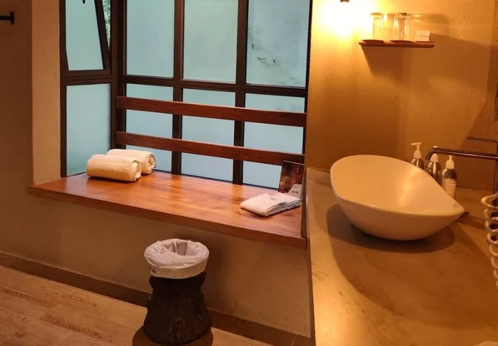 Tawi består af 13 “hytter”, som alle er elegant indrettet i en rustik stil og stadig med masser af charme. Alle værelser har både bruser og badekar på badeværelset, og på verandaen er der plads til at hygge sig med den medbragte bog. På Tawi er væggene af sten, mens døre og vinduer består af myggenet. Du har altså komforten fra et rigtigt, muret værelse mens du gennem nettene stadig kan høre og dufte lydene udenfor. Det er værd at bemærke, at værelserne har relativ åbne badeværelser, så Tawi egner sig bedst til par.
