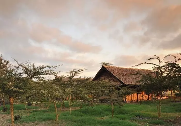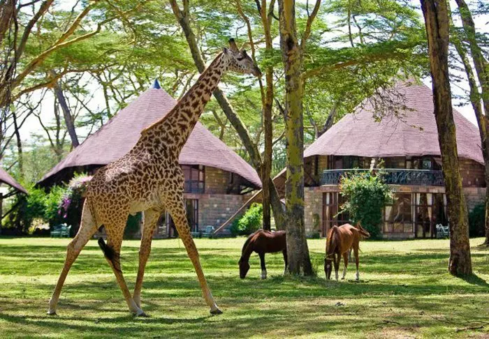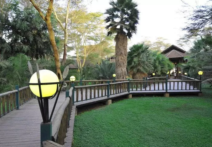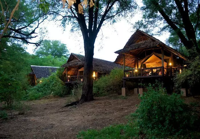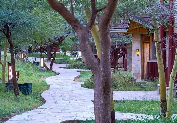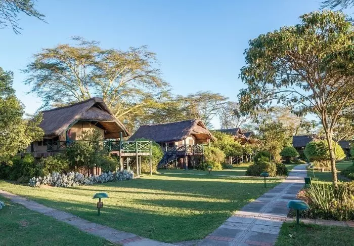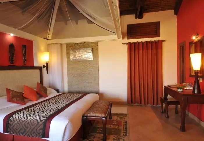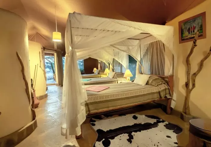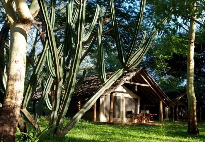 De rummelige hytter ligger spredt på den 200 hektar store ejendom i omgivet af de smukke haver. Der er i alt 83 værelser, alle med veranda, badeværelse og toilet. Indretningen er holdt i varme jordfarver og der er tillige vægmalerier inspireret af Masai kunst i nogle af værelserne.