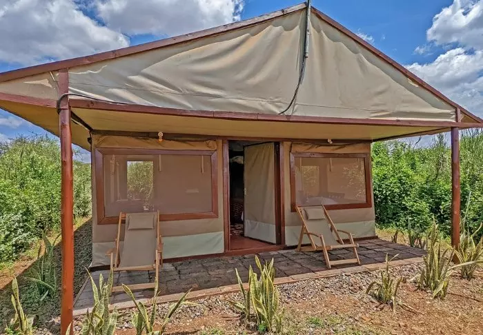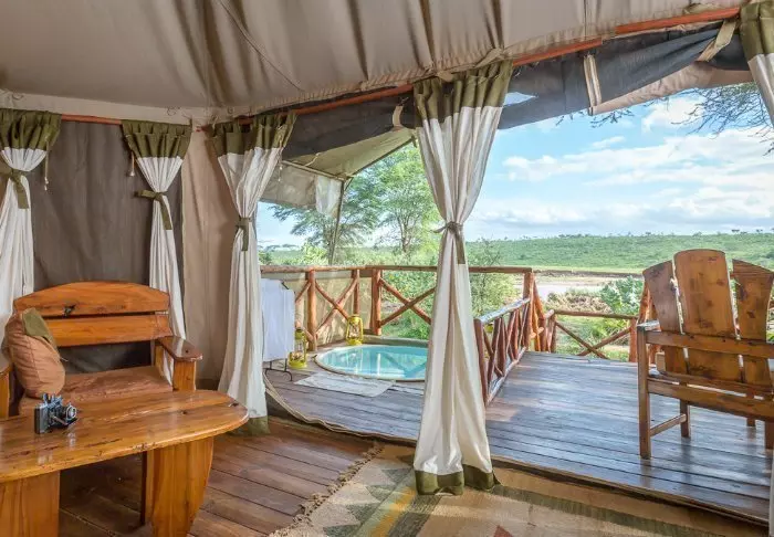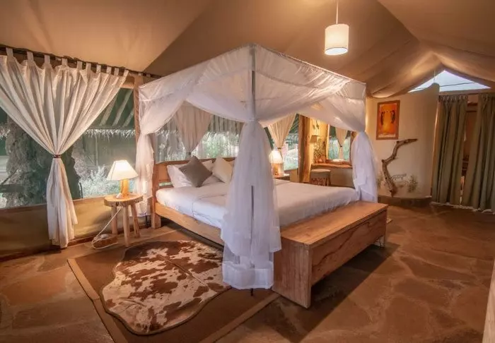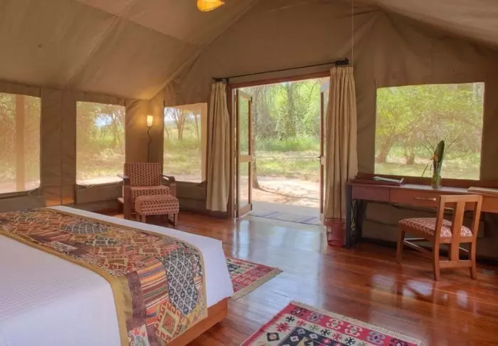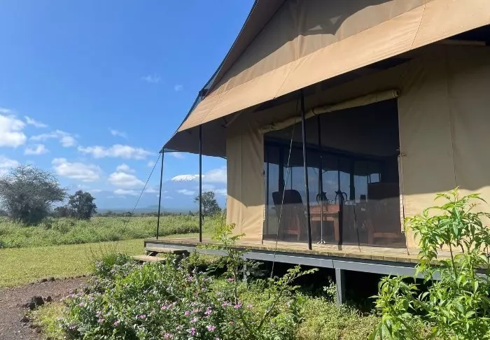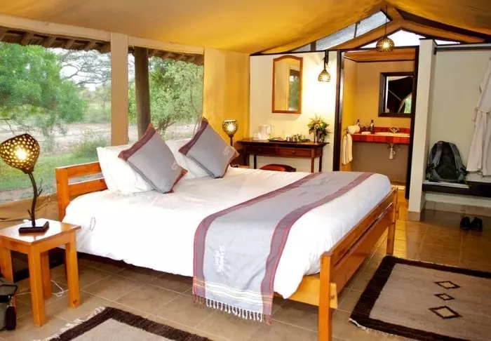 Her er 29 telte som er rummelige og godt indrettet. Her er ikke en masse dikkedarer men der er alligevel tænkt på alt. Alle telte har egen veranda – nogle af dem endda med egen plungepool og der er udsigt til Kilimanjaro fra alle teltene.