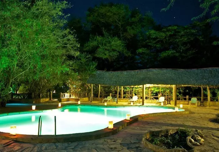 Lodgen har eget vandhul, som tiltrækker dyrene, og for menneskene er der en god pool, som man kan blive kølet af i. Her er restaurant, poolbar og mulighed for at få massage. Der findes også en lille souvenirbutik på lodgen.