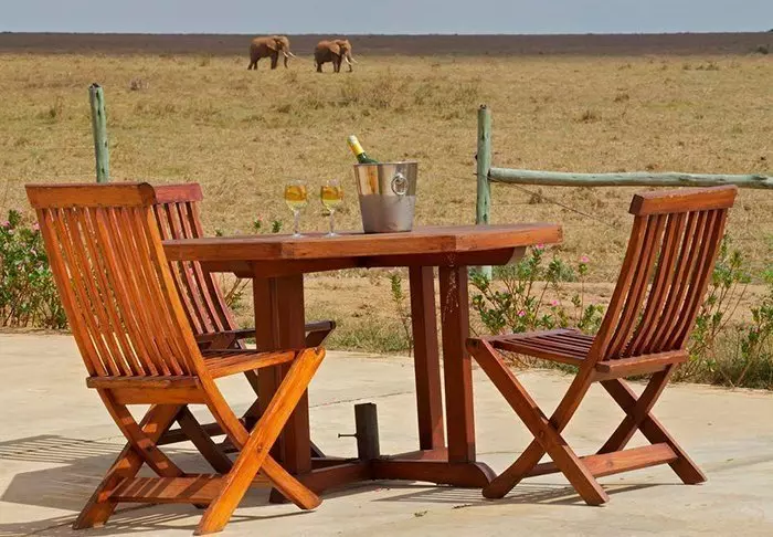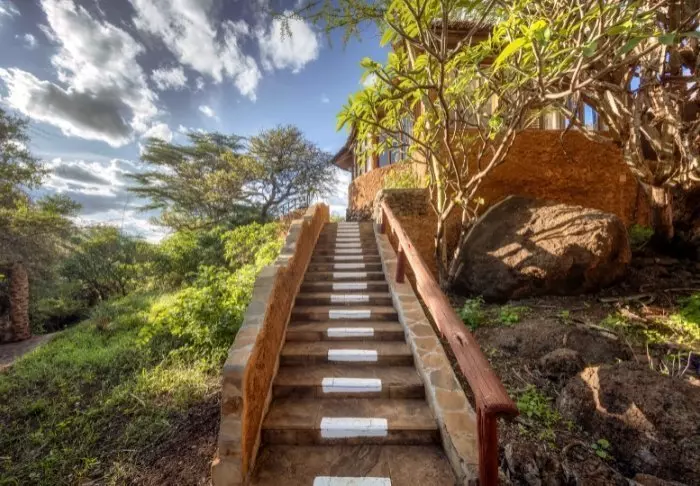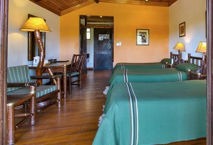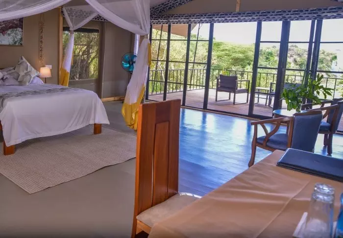 Der er i alt 56 værelser på lodgen. Alle værelserne har deres egen veranda, nogle med udsigt over vandhullet og andre over Chyulu Hills.