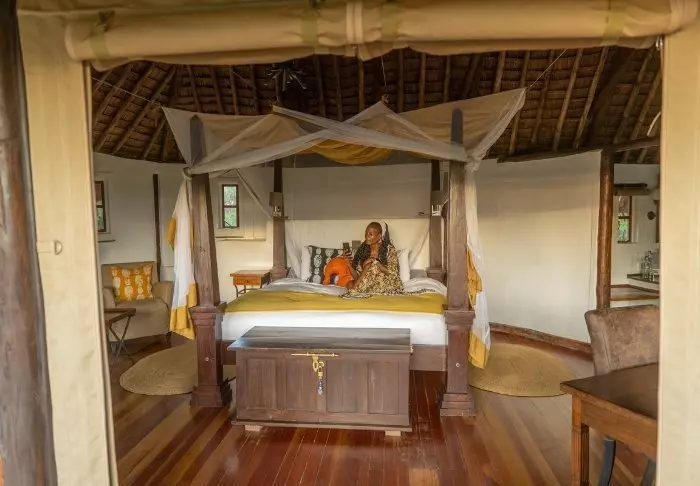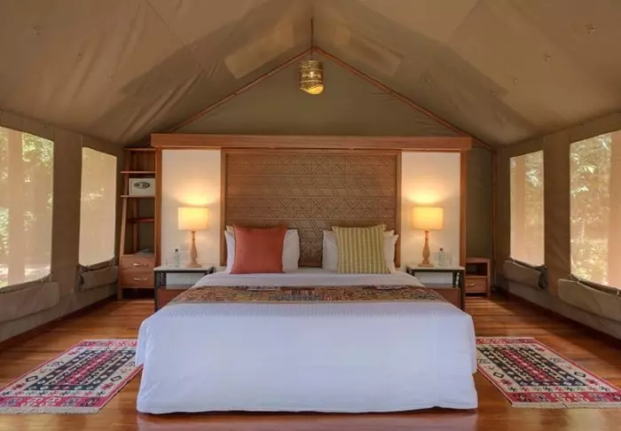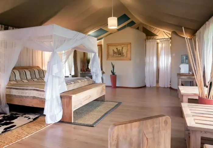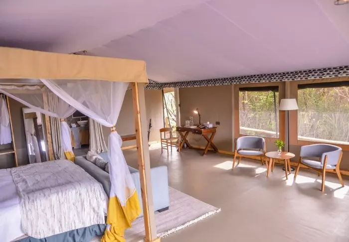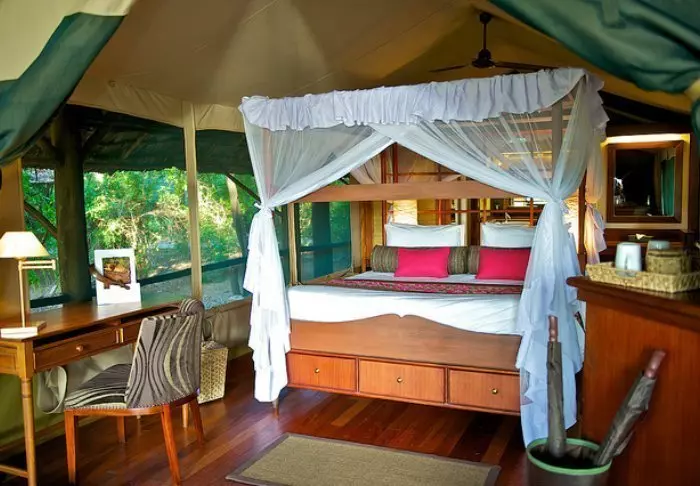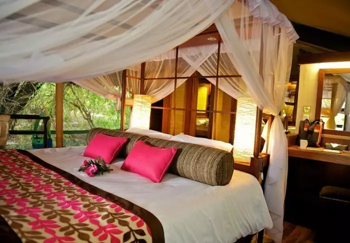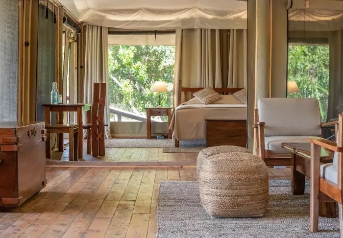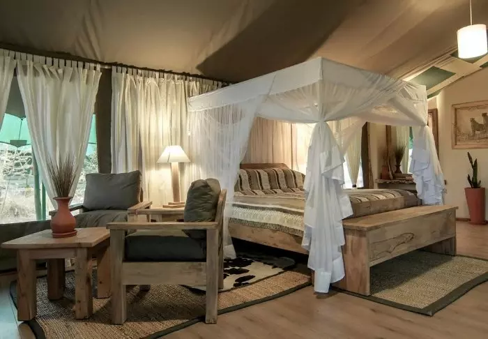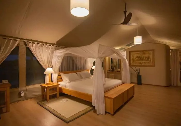 Her er 73 telte i forskellige størrelser, som er utroligt charmerende indrettet. Teltene har delvis murede vægge til bl.a. badeværelset, og der er fast gulv overalt. Siderne og taget er dog lavet af kanvas, så du får det begge af bedste verdener; en telt-værelse midt i den smukke afrikanske natur!