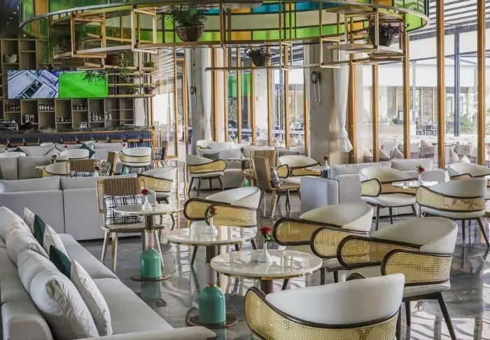 Hotellet er nærmest bygget som et lille kompleks, og i midten ligger en have med en pool for enden. Her er plads til solsenge, og ved siden af ligger en hyggelig bar. Hotellet har desuden 3 restauranter, loungeområde samt fitnessrum – og som det bedste af det hele, er der kun godt 15 minutters kørsel til lufthavnen, hvilket gør hotellet til det perfekte sted at overnatte på rejsen ud eller hjem.