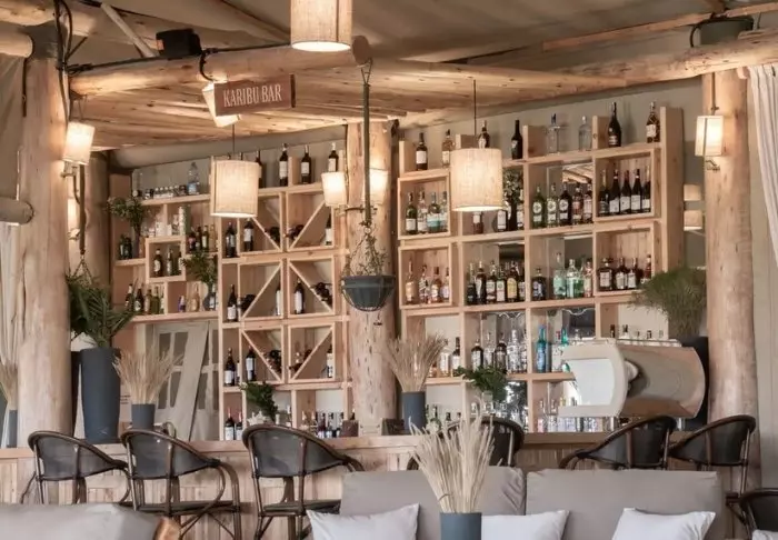 Det kan dog godt være vanskeligt at løsrive sig fra den hyggelige stemning i baren. Også her er der bløde sofaer, udsigt, WiFi, gode drinks og generelt bare en rigtig hyggelig stemning. Der er ikke langt til restauranten, som er lige så charmerende dekoreret, som resten af lejren. Maden er virkelig god – f.ek.s kan du bygge din egen pizza, som bages i en stenovn.