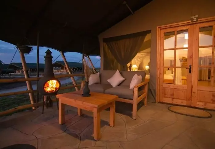 I fællesområderne finder du både spise- og loungetelt, som er hyggeligt indrettet bløde lænestole og tæpper og puder i masaiernes smukke farver. Der er to udendørs bålområder, hvorfra solnedgangen kan nydes med en kølig drink i hånden.