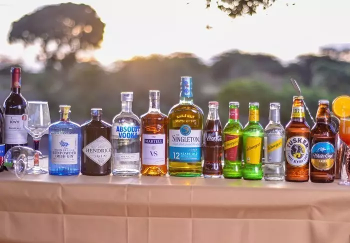 Sodavand, juice, lokale øl og vin, udvalgte cocktails.