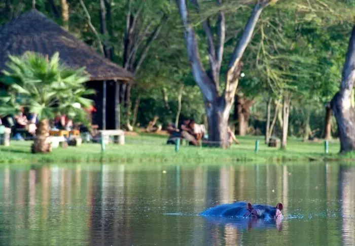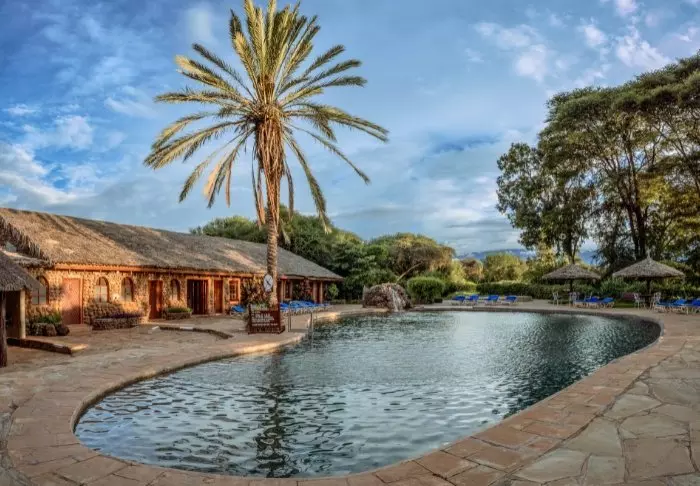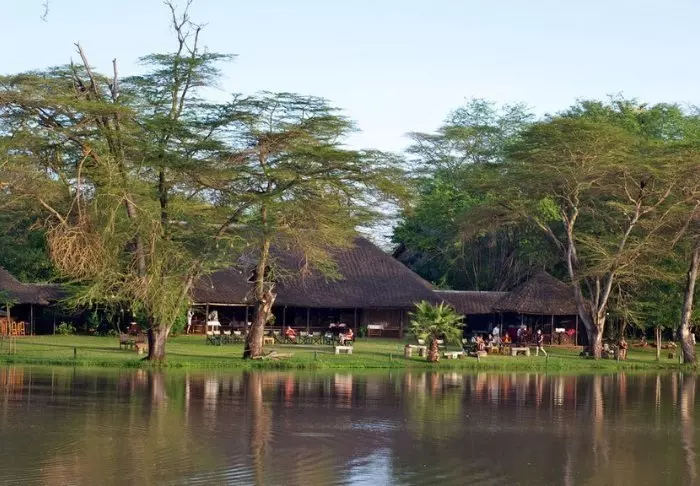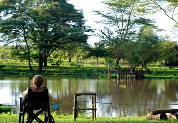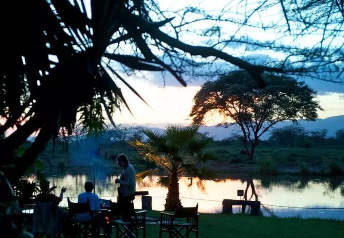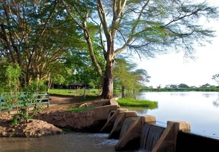 Campen ligger ved Sante floden, og fra græsplænen foran campen har du den smukkeste udsigt mod Kilimanjaro. Floden har dannet en dam foran lodgen, som tiltrækker massevis af fugle, og flodheste og krokodiller boltrer sig lystigt i vandet (og om natten på græsplænen foran lodgen).