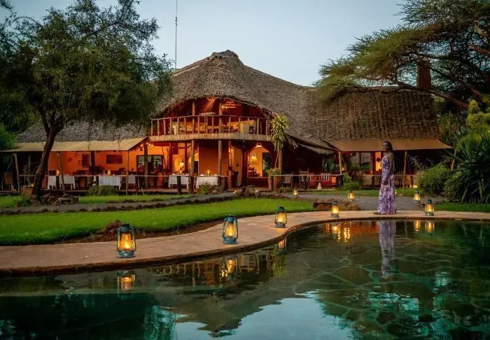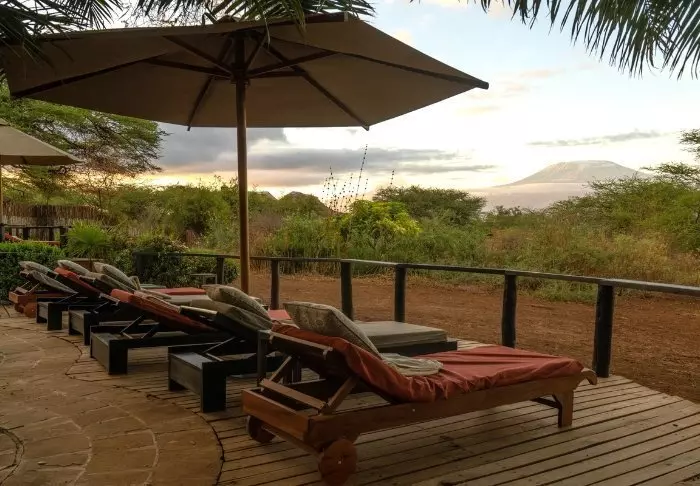 Denne charmerende lodge ligger i Amboseli Nationalpark ved foden af Kilimanjaro.