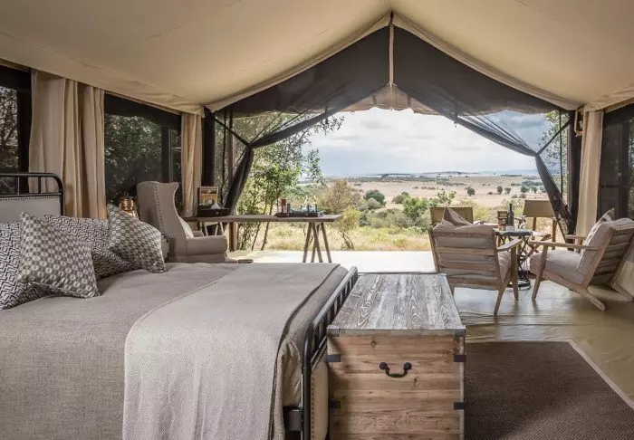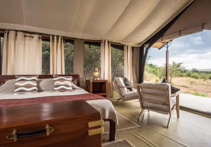 Lejren består af 15 telte. Her er god plads til både seng, hyggehjørne, minibar og din bagage. Også på verandaen er der god plads og udsigt til Masai Mara – og skulle du føle dig lidt doven, kan du såmænd også bare blive liggende i senge og nyde udsigten gennem de store vinduer. Der er Wi-Fi i alle telte