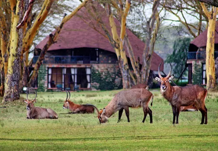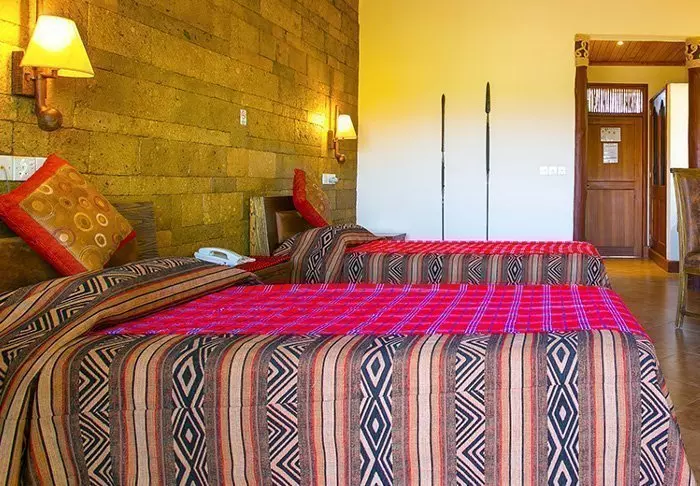 Lodgen består af 7 små toetagers ”huse”, som hver har 10 værelser. Værelserne er hyggeligt indrettet i typisk afrikansk stil. De har alle eget badeværelse, loftsvifte, te- og kaffefaciliteter men vigtigst af alt; en stor terrasse eller balkon, hvorfra der er udsigt til sletterne og dyrelivet.