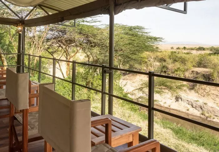 Her er 19 telte, som alle har egen terrasse udenfor, hvorfra du har udsigt til floden, Ewaso Nyiro (som betyder den brune flod). Det er Kenyas tredjelængste flod, og den er på mange måde livline til denne nordligere del af Kenya.