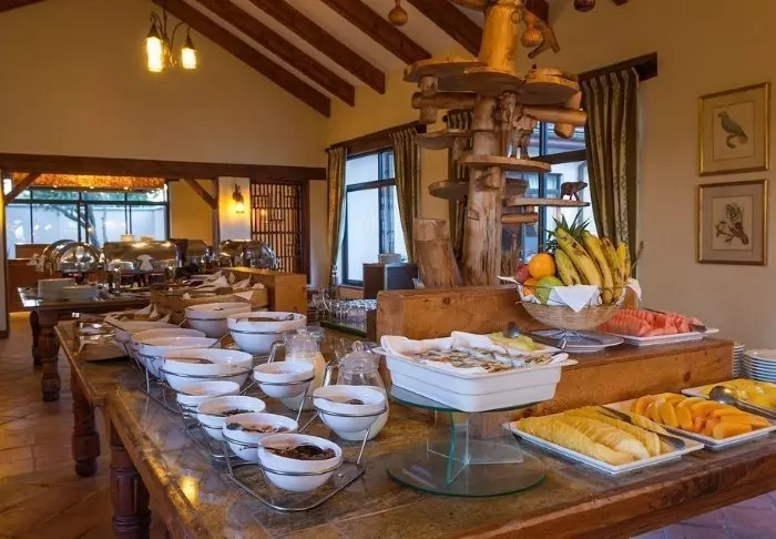 Hotellet har to restauranter og to barer samt en hyggelig udendørs terrasse ved poolen. Bliver du lækkersulten, kan du besøge den lokale kaffebar, som både byder på kaffe og lækre hjemmelavede kager. Hotellet har en spa, så der er mulighed for en god gang massage oven på safariturene.