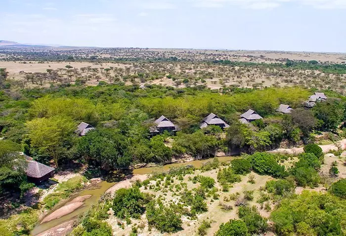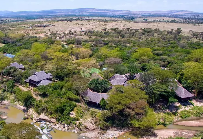 Olengoti Eco Safari Camp ligger lige ved Talek flodens bredder, og består af 11 luksustelte og 6 luksushytter.