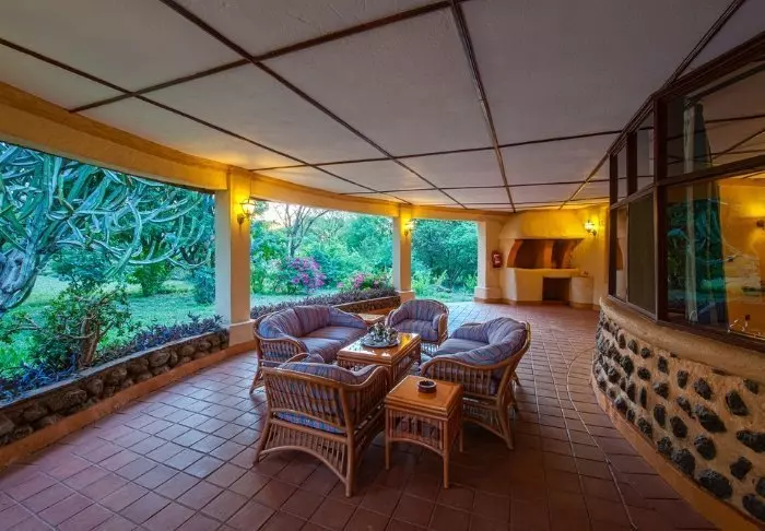 Alle værelserne har egen terrasse som byder på en flot udsigt over sletterne ved foden af Kilimanjaro.
