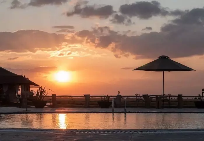 På sin egen lukkede vej tæt ved indgangen til Amboseli Nationalpark finder du Amboseli Sentrim Lodge, hvorfra der er en helt ekstraordinær udsigt til Afrikas højeste bjerg, Mt. Kilimanjaro.