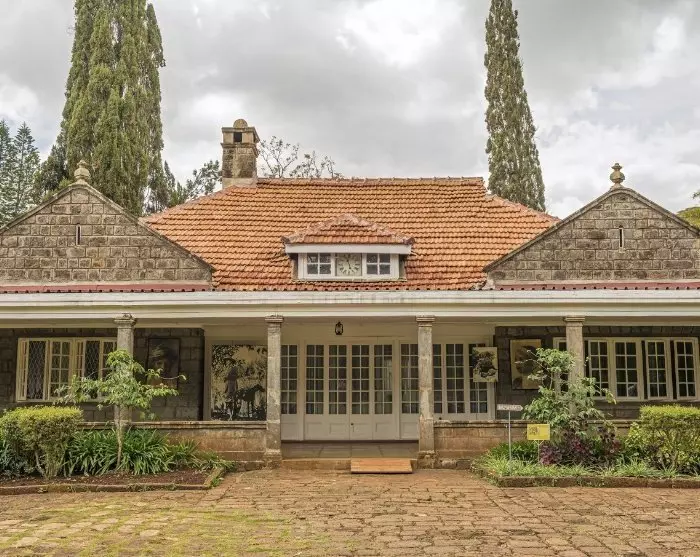 Frokosten nydes i Karen Coffee Garden – den gamle administrations bygning for forfatterindens kaffeplantage.