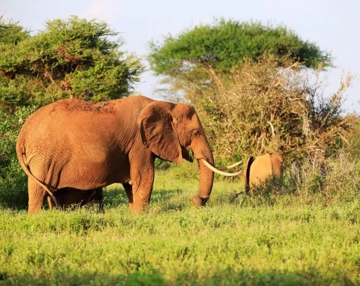 I Tsavo East er jorden knaldrød, og det giver dyrene et lidt særpræget rødligt udseende. Den røde jord kan du lige så godt vænne dig til – den møder du nemlig igen, når du kommer til Madagaskar.