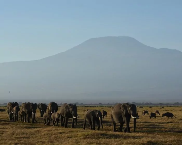 Amboseli Nationalpark er en af Kenyas mindste nationalparker, men til gengæld venter her store oplevelser. Overalt har du udsigt til Kilimanjaro. Midt på dagen er toppen ofte dækket af skyer, men om morgenen og sidst på dagen, letter skydækket tit, og du kan få nogle virkelig flotte billeder af bjerget. Alt imens skyerne driver, bruger du dagen på safari i nationalparken.