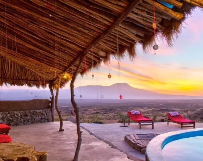 Måske kan du ved solopgang høre masaierne, som begynder at pusle uden for din hytte, og der er sikkert også en hel hær af fugle, som begynder deres morgentrillen. Slå dørene op og lig i sengen, mens du ser solen stå op over Kilimanjaro.