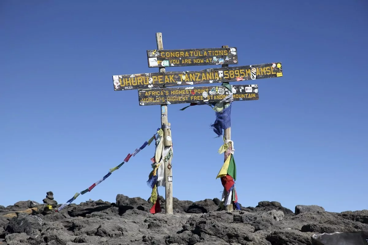 Omkring midnat står du op og du får serveret en snack, inden du i mørke starter den sidste opstigning til toppen. Det vanskelige terræn de ca. 6 timer frem til Stella Point er den største udfordring for de fleste. Målet er at nå Stella Point kort tid efter solopgang, så du kan nyde den rødglødende solopgang her. Hvilet bliver ikke langt, da det ellers bliver nærmest uoverkommeligt at komme i gang igen som følge af kulde og træthed. Du fortsætter langs kraterkanten og det sidste stykke er en jævn stigning. Afhængig af årstiden kan du risikere, at der er sne det sidste stykke til dit endelige mål, som er Uhuru Peak, toppen af Kilimanjaro og toppen af Afrika. Når du toppen 5.895 m.o.h., kan du klappe dig selv på skulderen, nyde den fantastiske udsigt og tage et selfie ved Uhuru Peak skiltet, som evigt minde.