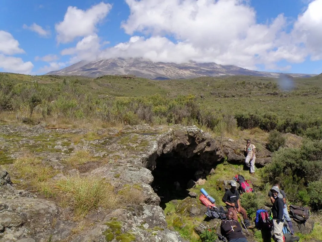 Dagens etape starter om formiddagen med en støt stigning frem til Second Cave. Etapen går over hedelandskabet, som er præget af lyng, vilde blomster og stenede stier. Undervejs kan du nyde udsigten til Kibo og de østvendte gletsjere på kraterkanten. Efter frokost forlader du hovedstien og vandrer videre på en mindre sti mod Mawenzis takkede tinder. Du ankommer til ”Second Cave”, som ligger i en beskyttet dal nær Kikelewa Caves omgivet af de kæmpemæssige senecios planter.