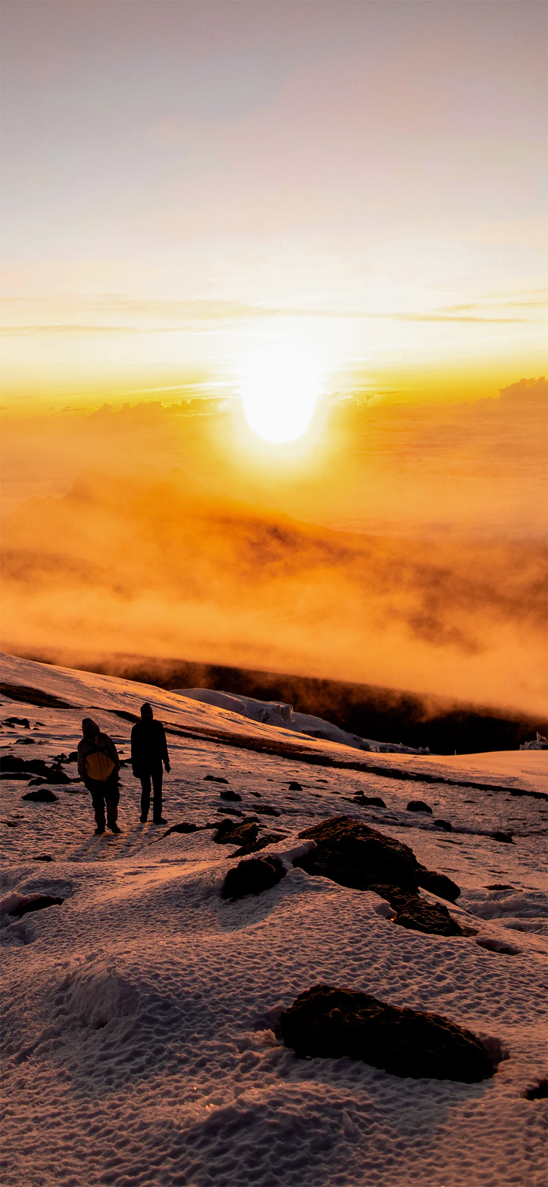 Omkring midnat står du op og efter en snack, går turen ud i natten. Det vanskelige terræn med løse sten de næste mange timer er den største udfordring på hele turen for de fleste. Målet er at være fremme ved Gilman’s Point ved daggry, så du kan nå Kibos højeste punkt Uhuru kort tid efter solopgang. Du gør et kort stop ved Gilman’s Point, hvor der er en flot udsigt. Du fortsætter langs kraterkanten frem til Uhuru og det sidste stykke er en jævn stigning. Afhængig af årstiden kan du risikere, at der er sne det sidste stykke til Uhuru Peak, som er dit endelige mål, toppen af Kilimanjaro og toppen af Afrika. Når du toppen 5.895 m.o.h. kan du klappe dig selv på skulderen, nyde den fantastiske udsigt og tage et selfie ved Uhuru Peak skiltet, som evigt minde.